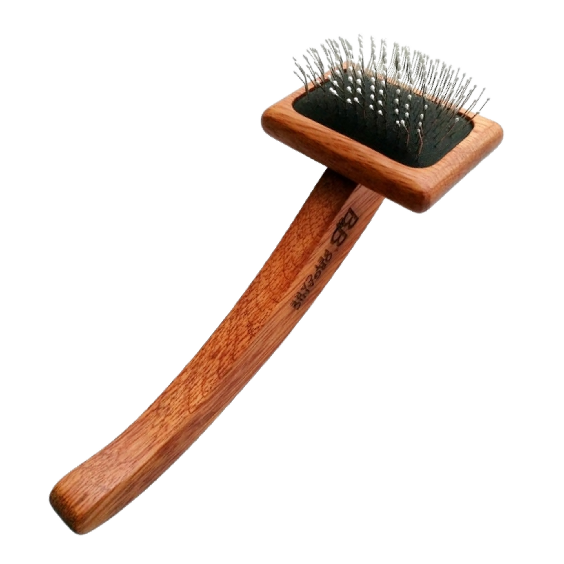 Karten er udstyret med et ergonomisk korrekt håndtag lavet af bæredygtigt Tamanu-træ, som giver et godt greb og gør pelsplejen mere komfortabel for både hund og ejer. Brug den sammen med B&B's Guldkam for at sikre, at din hunds pels er helt filtfri og velplejet.