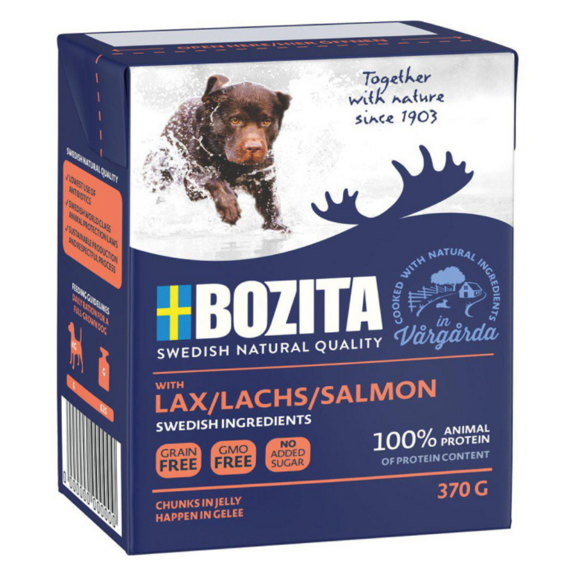Forkæl din hund med den naturlige smag af laks og giv den næring på den bedste måde – Bozita Vådfoder Laks er et sundt valg for en glad og sund hund! 🐶💛